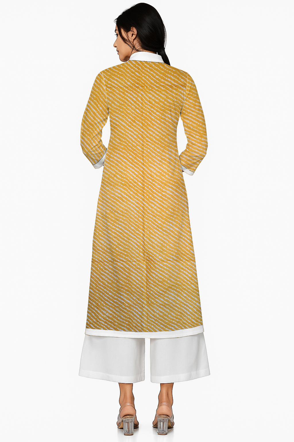 Bandhani stripe Printed Gold Yellow Cotton Collar Neck Kurti For Womens