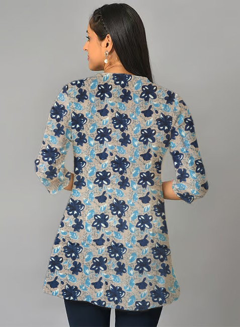 Be the first to review “Blue Hibuscus Floral Printed in Geometirc Form Cotton Short Kurti For Womens”