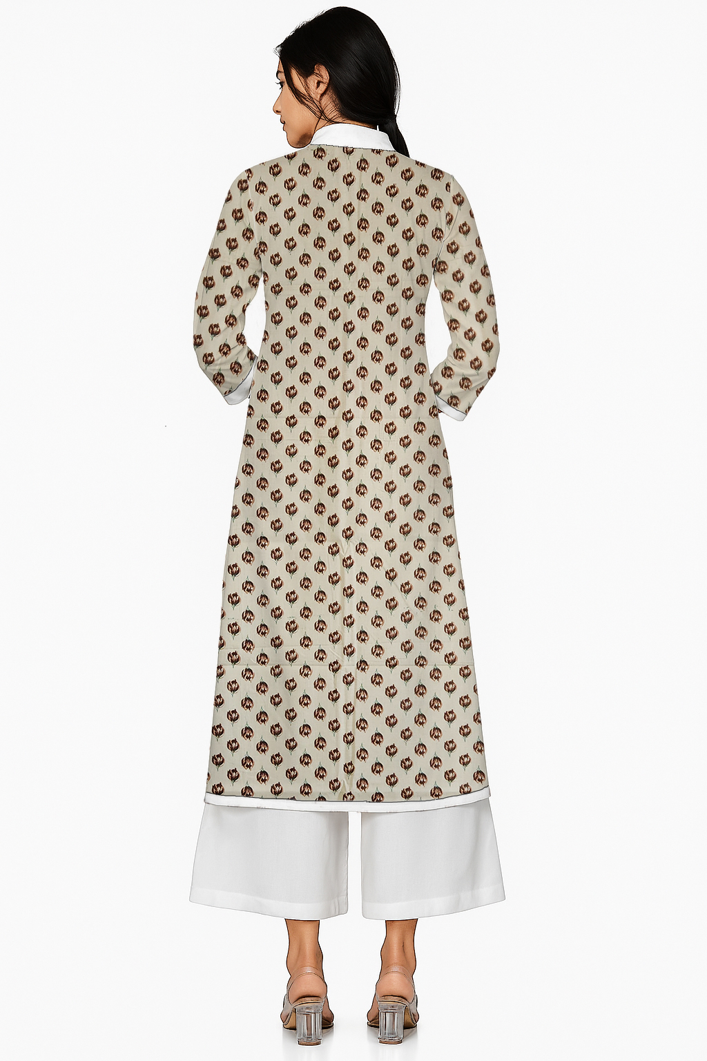 Be the first to review “Brown Small Floral Print in Geometric Form Cotton Collar Neck Kurti For Womens”