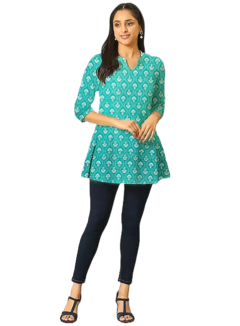 This Short Kurti look will catch your fancy at a single glance. This Printed Short Kurti features 3/4th sleeves that adds to its classy look. Besides, the use of Suitable quality Cotton fabric in its making further ensures that you stay comfortable all day long. Pair it with Jeans Pant or Leggis for a cohesive look that exudes confidence.