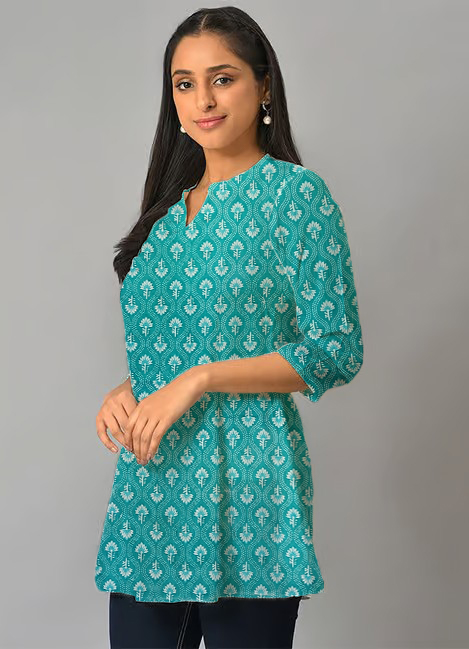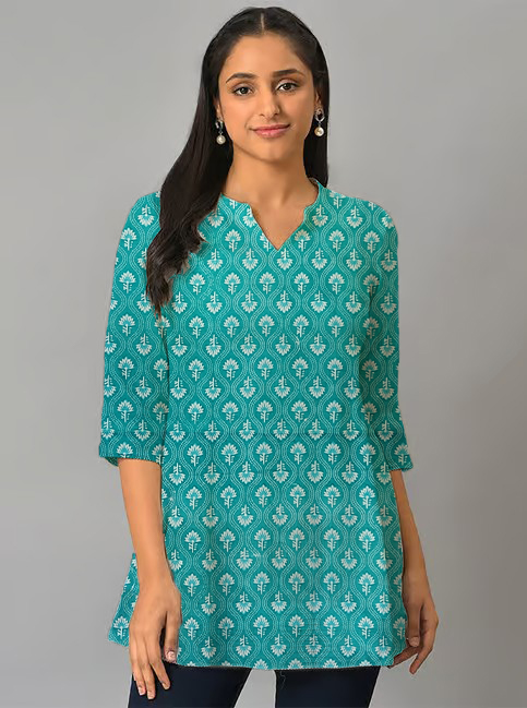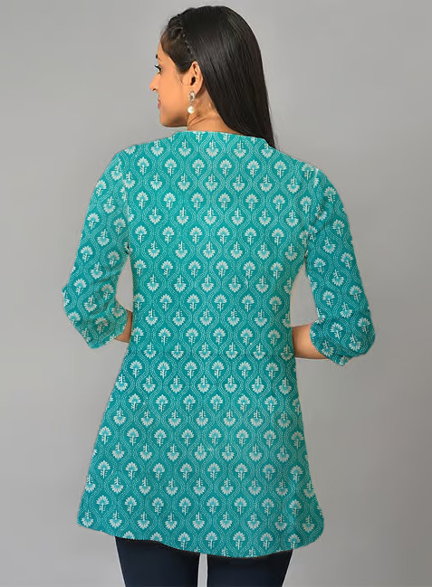 Be the first to review “Floral And Geometric Print Blue Cotton Short Kurti For Womens”