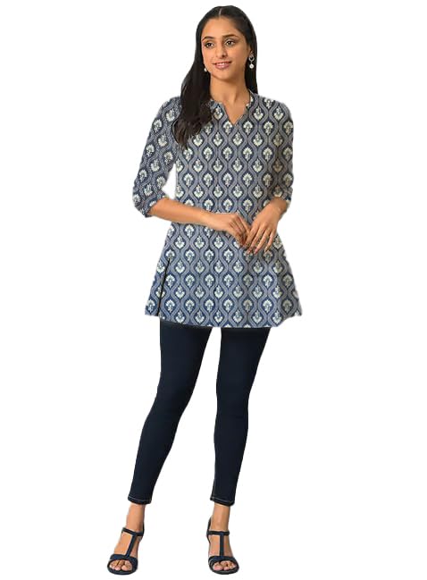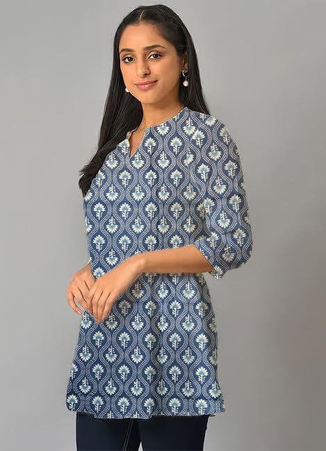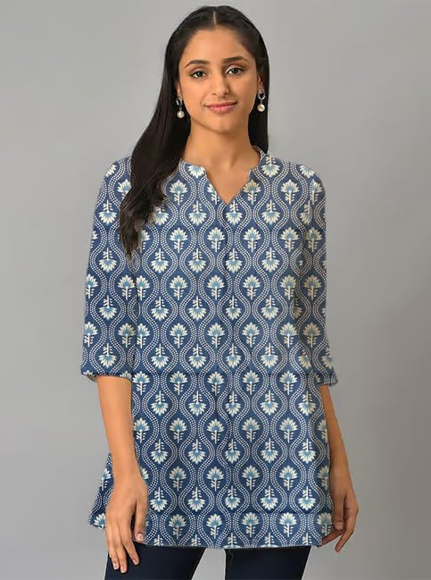 Be the first to review “Floral And Geometric Print Navy Blue Cotton Short Kurti For Womens”