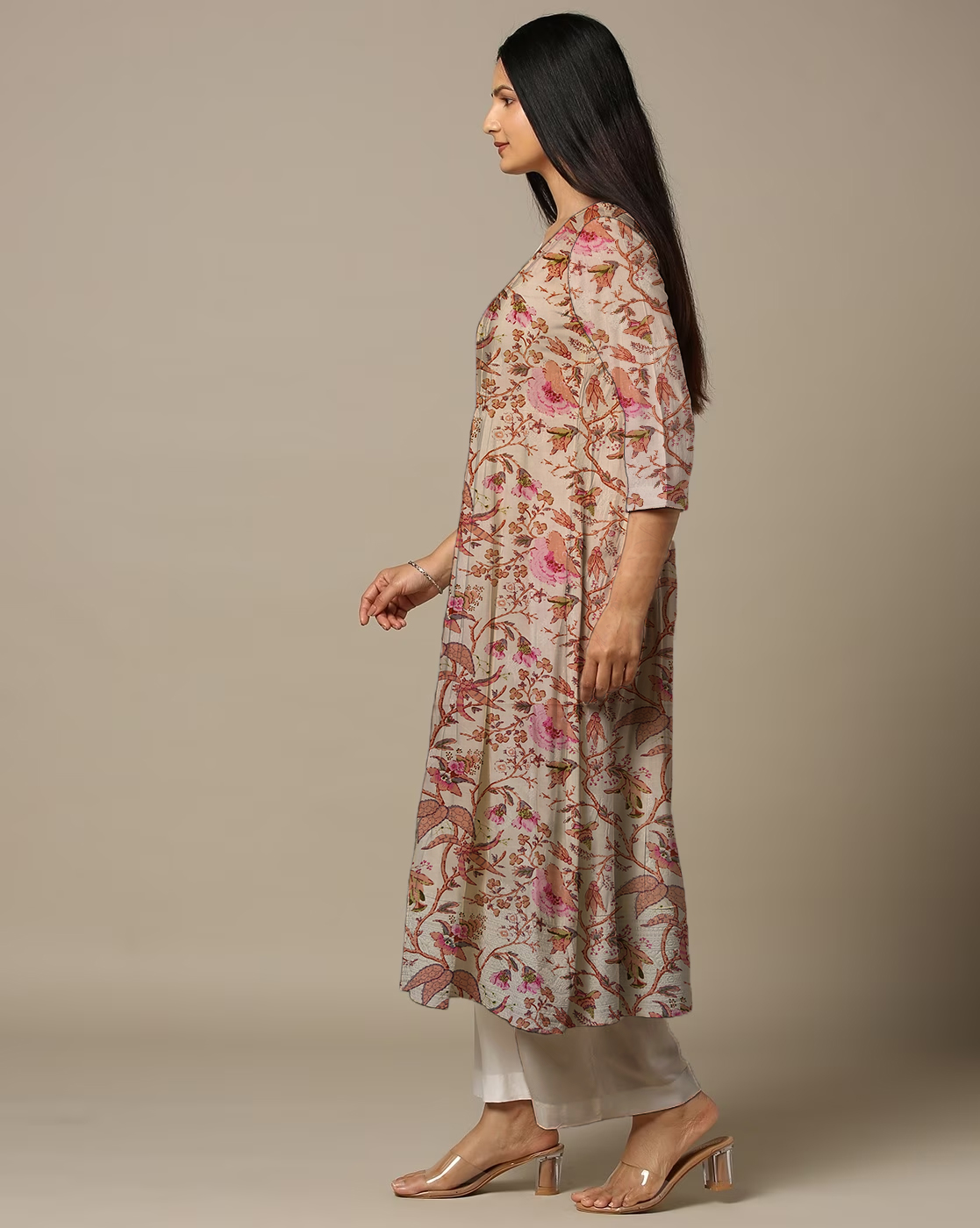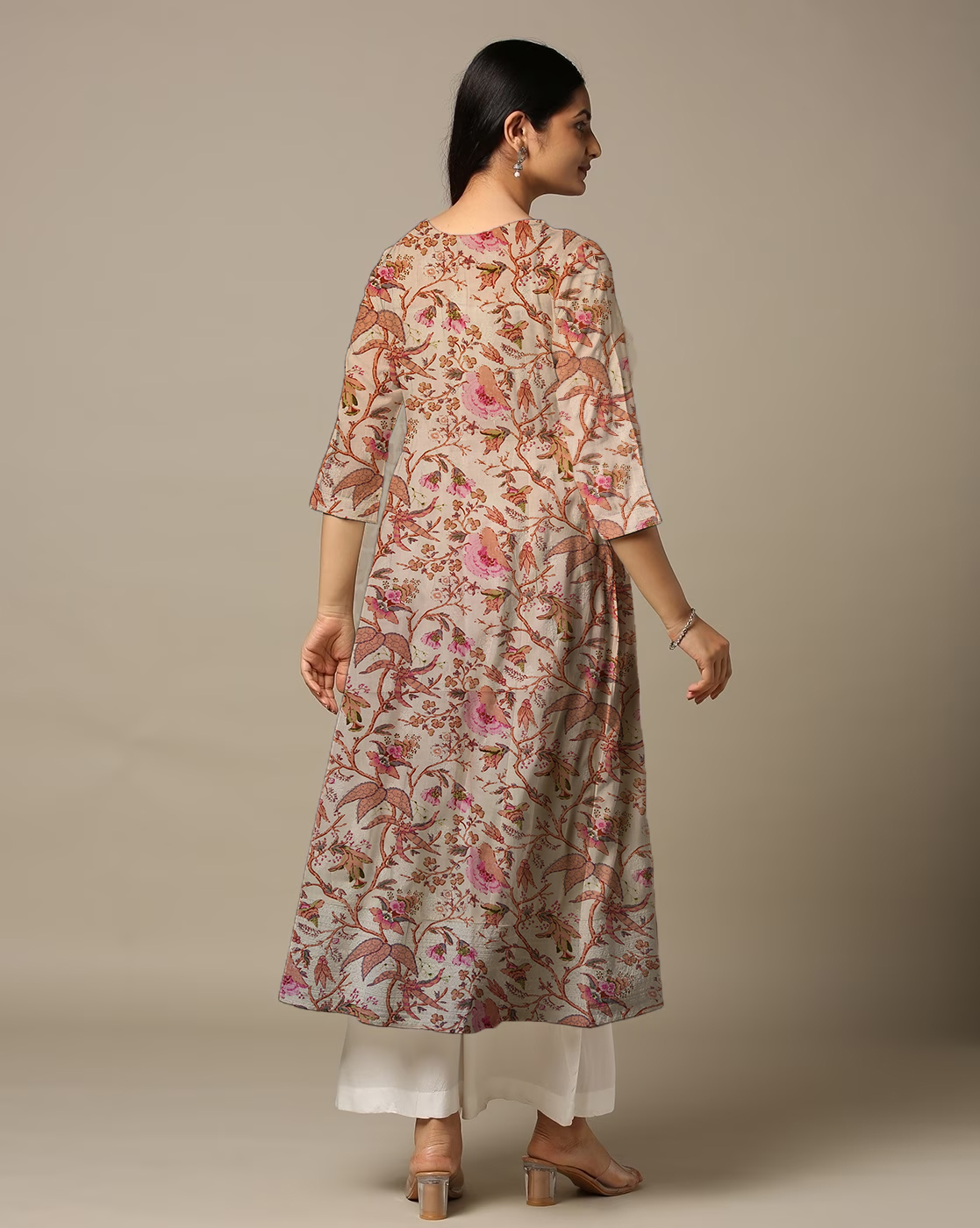 Be the first to review “Floral And Leaf Print Pink Cotton Anarkali Kurti For Womens”