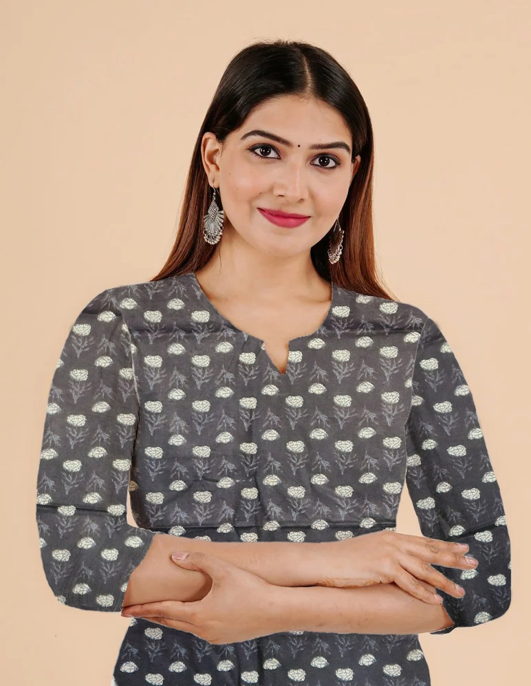 Be the first to review “Floral Buti Printed Black Cotton Kurti For Womens”