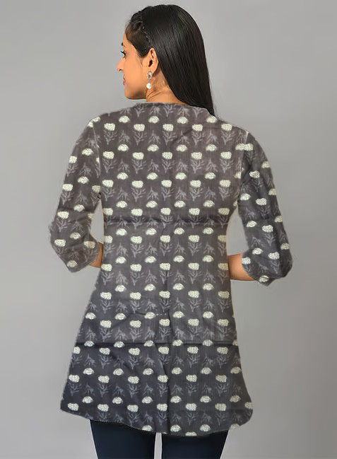 Be the first to review “Floral Buti Printed Black Cotton Short Kurti For Womens”