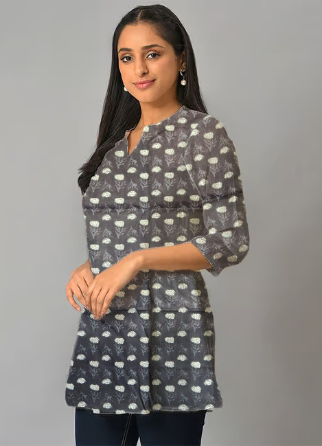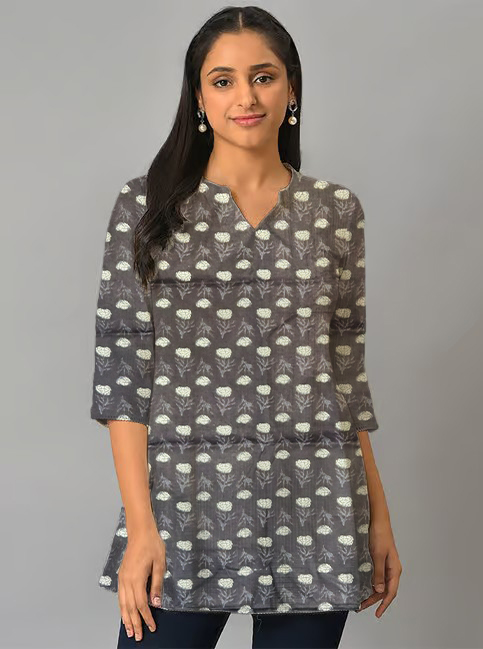 This Short Kurti look will catch your fancy at a single glance. This Printed Short Kurti features 3/4th sleeves that adds to its classy look. Besides, the use of Suitable quality Cotton fabric in its making further ensures that you stay comfortable all day long. Pair it with Jeans Pant or Leggis for a cohesive look that exudes confidence.