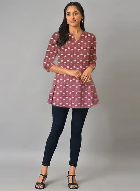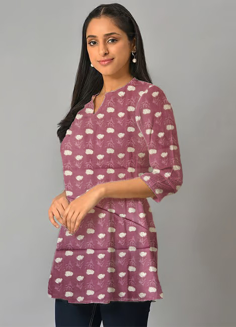 This Short Kurti look will catch your fancy at a single glance. This Printed Short Kurti features 3/4th sleeves that adds to its classy look. Besides, the use of Suitable quality Cotton fabric in its making further ensures that you stay comfortable all day long. Pair it with Jeans Pant or Leggis for a cohesive look that exudes confidence.