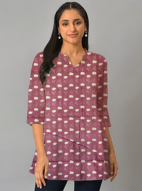 Floral Buti Printed Maroon Cotton Short Kurti For Womens