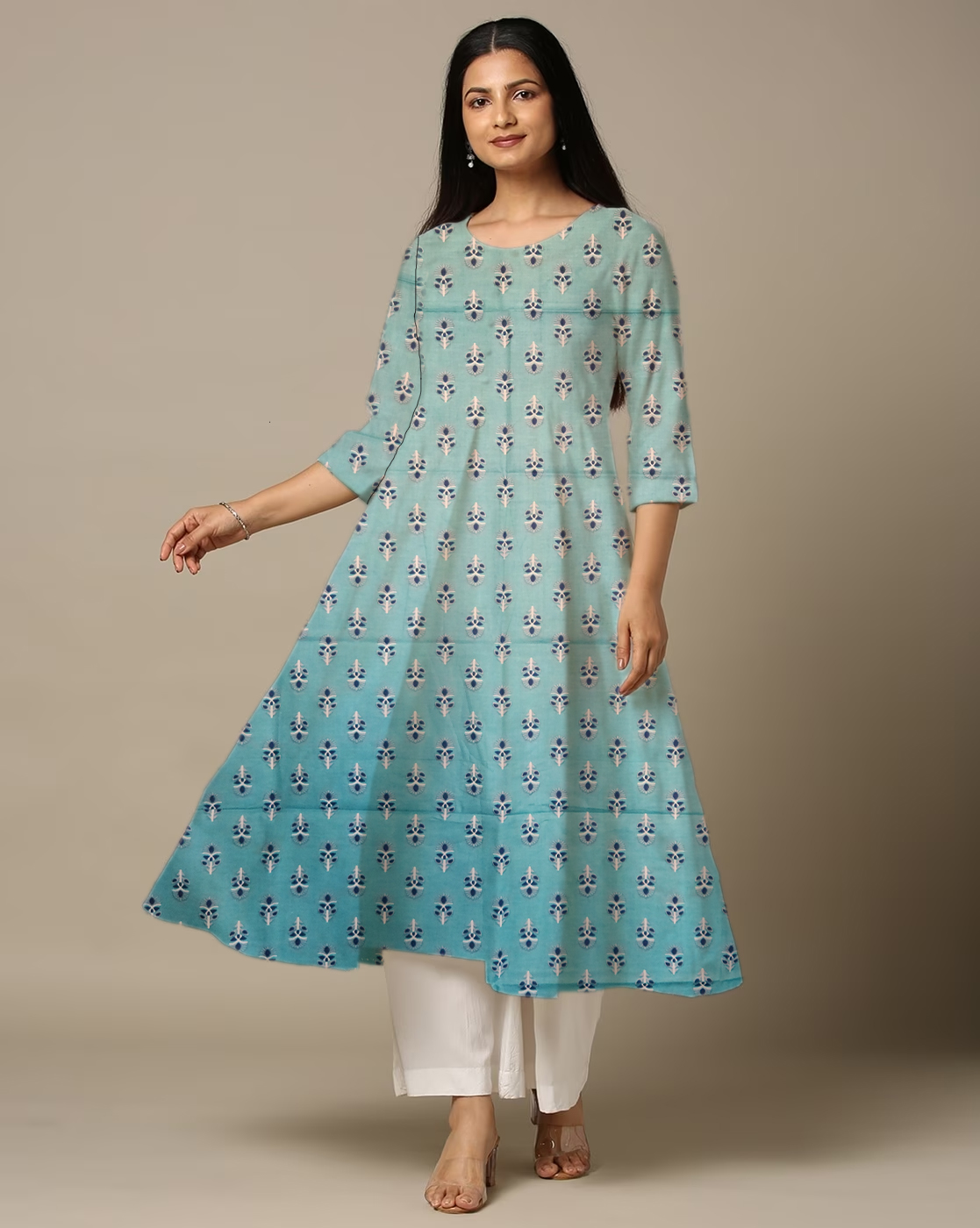 Be the first to review “Floral Printed Cotton Sky Blue Anarkali Kurti For Womens”