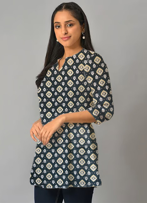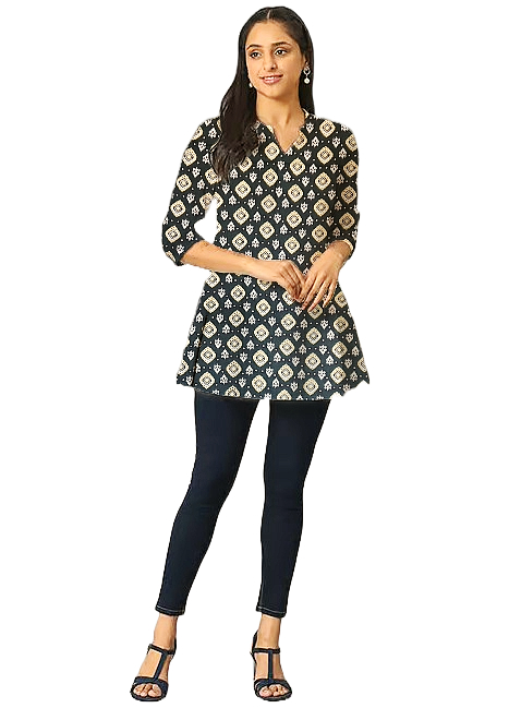 This Short Kurti look will catch your fancy at a single glance. This Printed Short Kurti features 3/4th sleeves that adds to its classy look. Besides, the use of Suitable quality Cotton fabric in its making further ensures that you stay comfortable all day long. Pair it with Jeans Pant or Leggis for a cohesive look that exudes confidence.