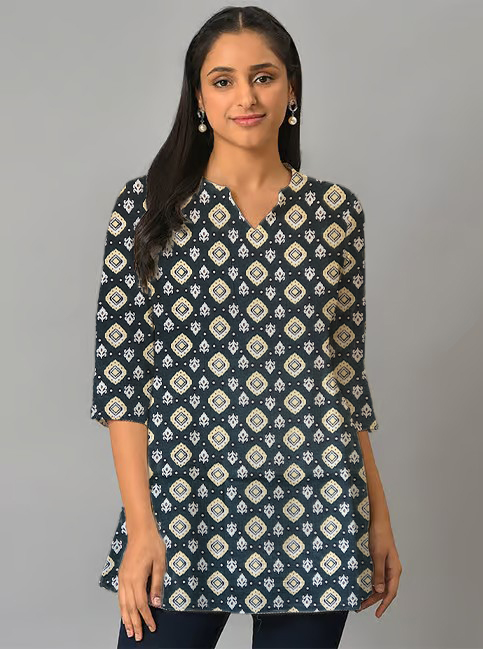 Be the first to review “Geometric Print Green Cotton Short Kurti For Womens”