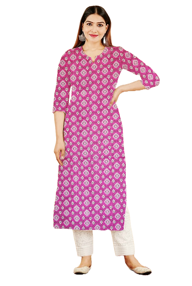 This Kurti look will catch your fancy at a single glance. This Printed Kurti features 3/4th sleeves that adds to its classy look. Besides, the use of Suitable quality Cotton fabric in its making further ensures that you stay comfortable all day long. Pair it with Jeans Pant or Leggis for a cohesive look that exudes confidence.