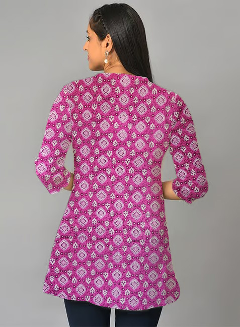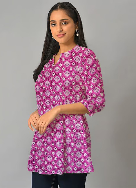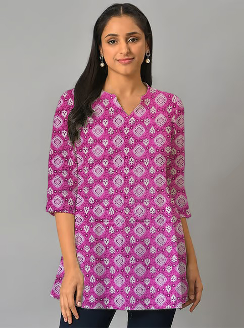 Be the first to review “Geometric Print Purple Cotton Short Kurti For Womens”
