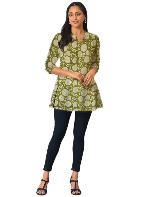 Be the first to review “Green Marigold Flower Print Cotton Short Kurti For Womens”