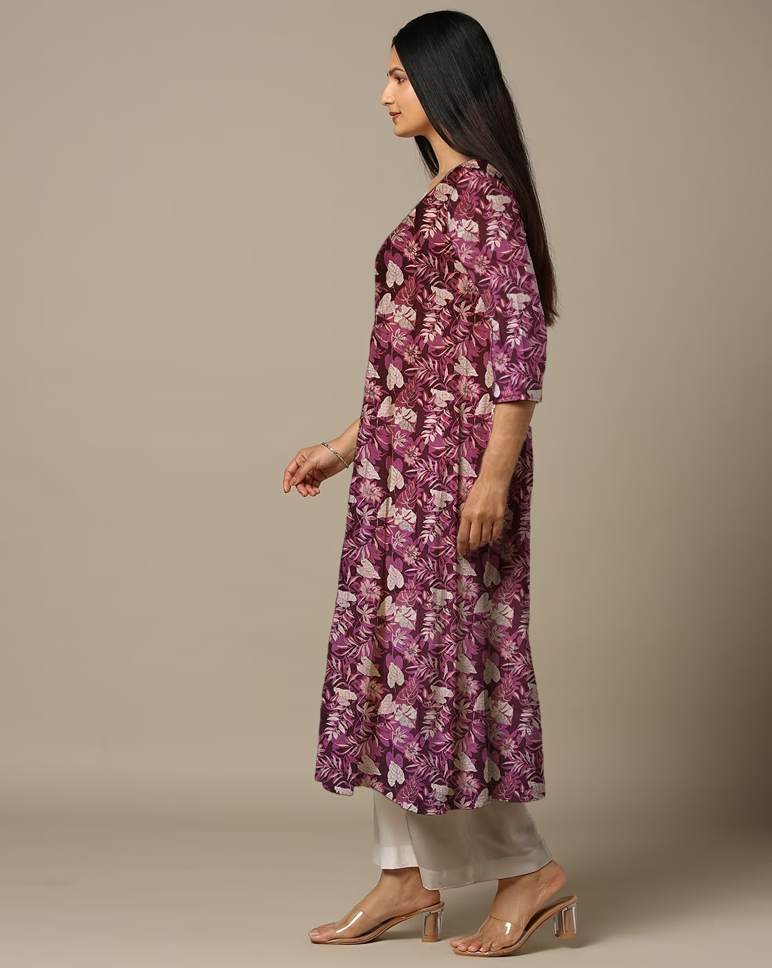 Be the first to review “Heart Leaf Print Purple Cotton Anarkali Kurti For Womens”