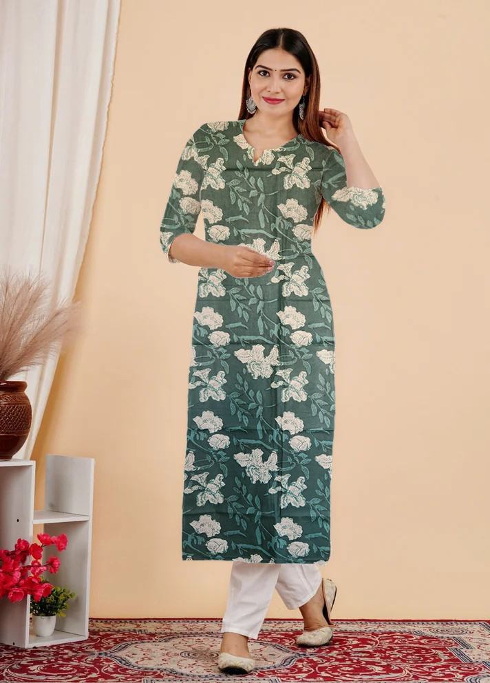 Be the first to review “Iris Floral Printed Green Cotton Kurti For Womens”