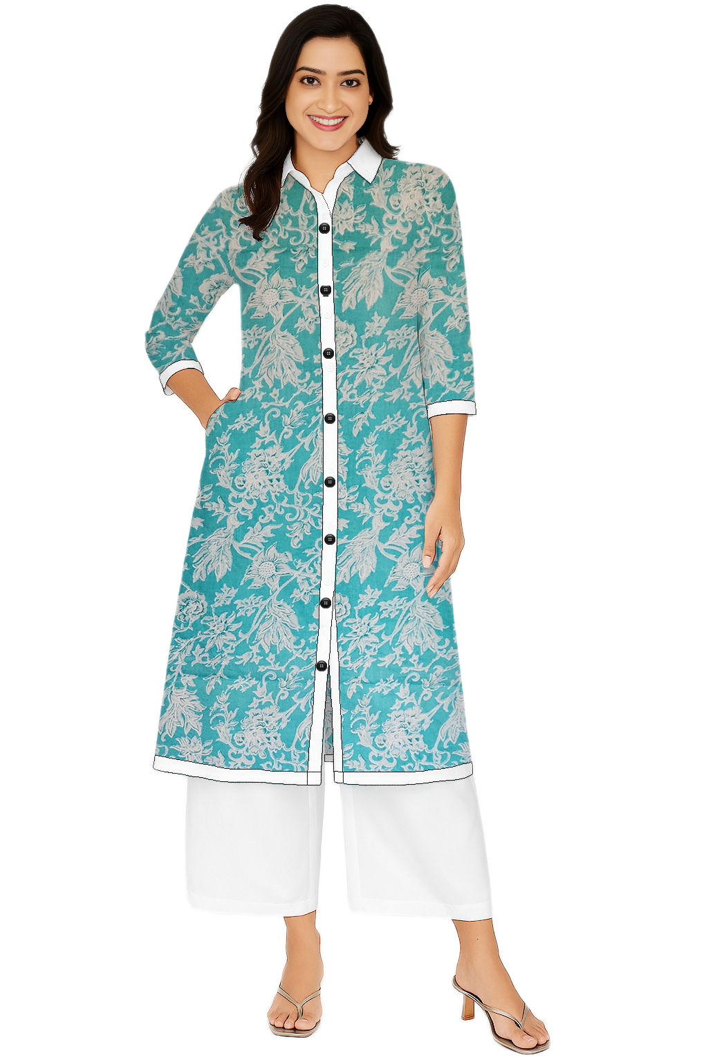 Be the first to review “Large Floral Print Blue Cotton Collar Neck Kurti For Womens”
