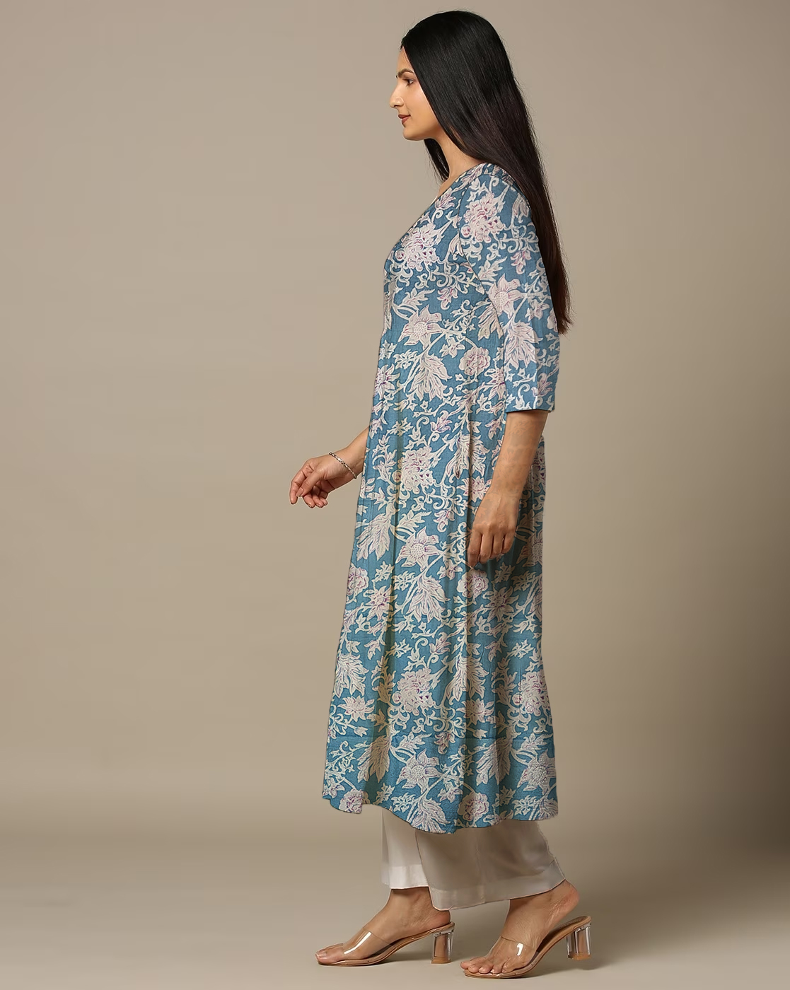 Be the first to review “Large Floral Print Steel Blue Cotton Anarkali Kurti For Womens”
