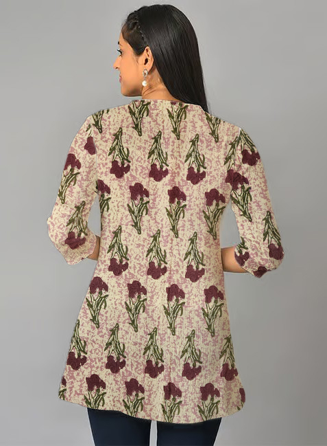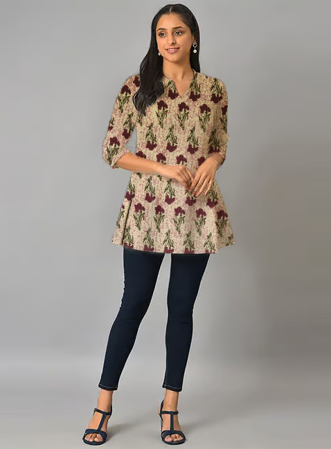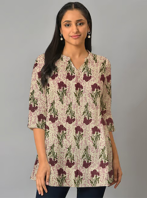 This Short Kurti look will catch your fancy at a single glance. This Printed Short Kurti features 3/4th sleeves that adds to its classy look. Besides, the use of Suitable quality Cotton fabric in its making further ensures that you stay comfortable all day long. Pair it with Jeans Pant or Leggis for a cohesive look that exudes confidence.