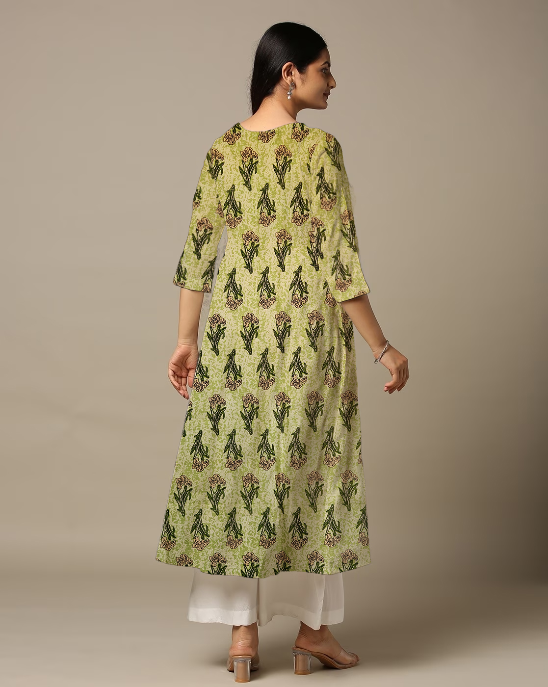 Be the first to review “Large Lily Floral Printed Green Cotton Anarkali Kurti For Womens”
