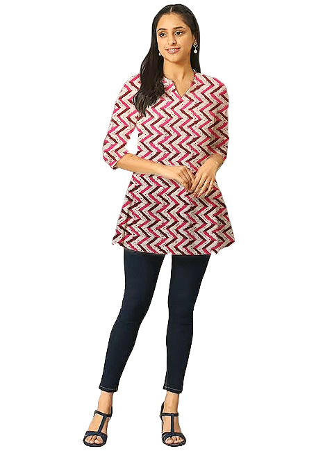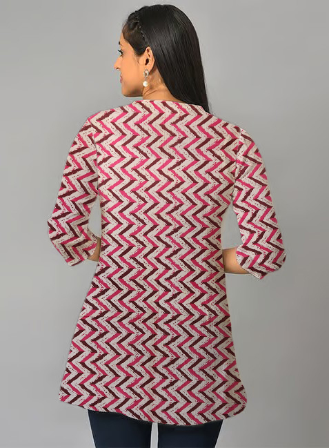 Be the first to review “Pink Cotton Geometric Print Short Kurti For Womens”