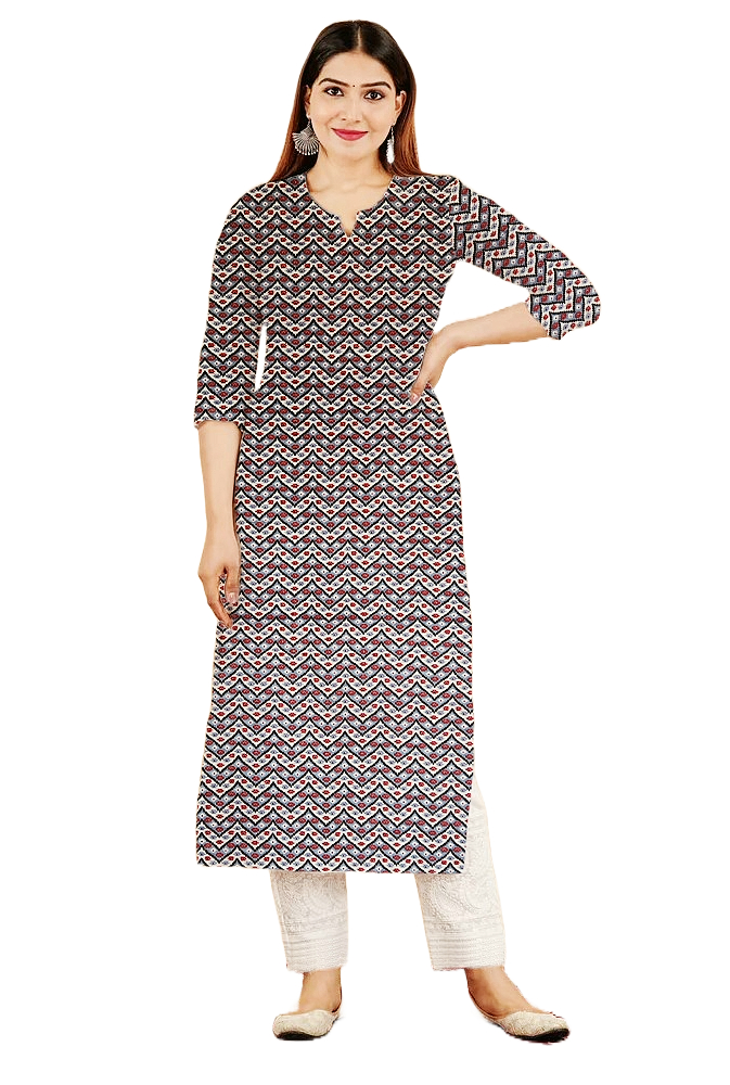 This Kurti look will catch your fancy at a single glance. This Printed Kurti features 3/4th sleeves that adds to its classy look. Besides, the use of Suitable quality Cotton fabric in its making further ensures that you stay comfortable all day long. Pair it with Jeans Pant or Leggis for a cohesive look that exudes confidence.