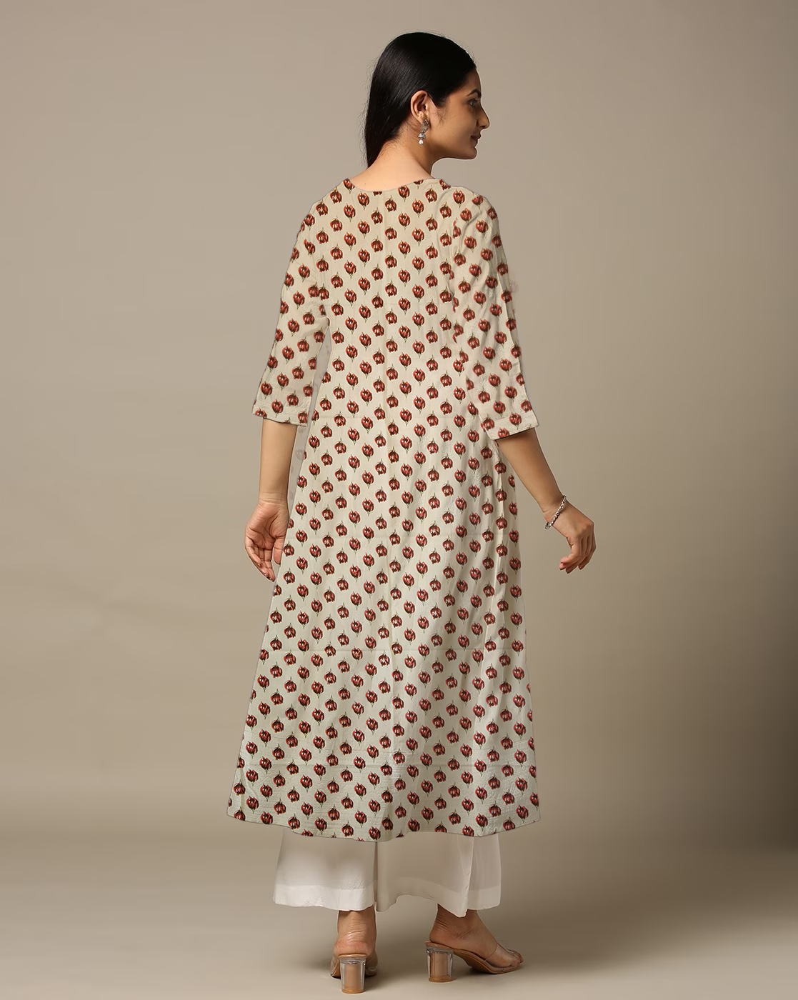 Be the first to review “Red Small Floral Print in Geometric Form Cotton Anarkali Kurti For Womens”