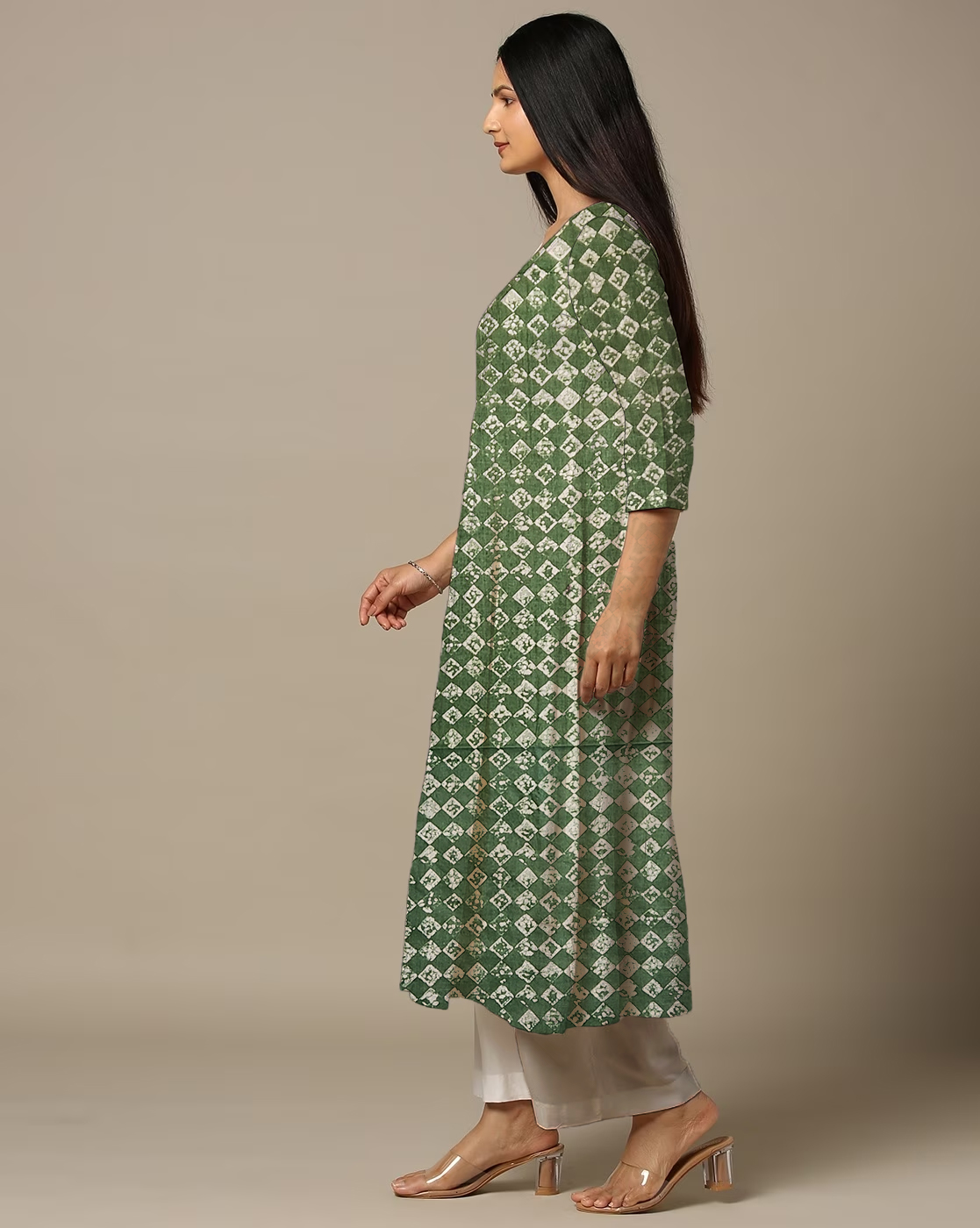 Be the first to review “Square Print Green Cotton Anarkali Kurti For Womens”