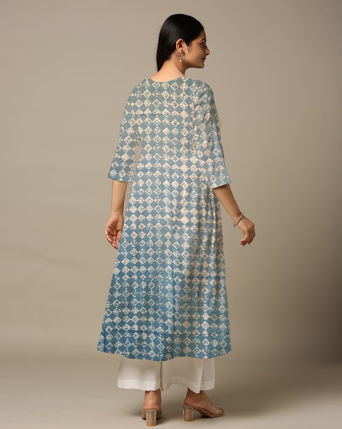 Be the first to review “Square Print Royal Blue Cotton Anarkali Kurti For Womens”