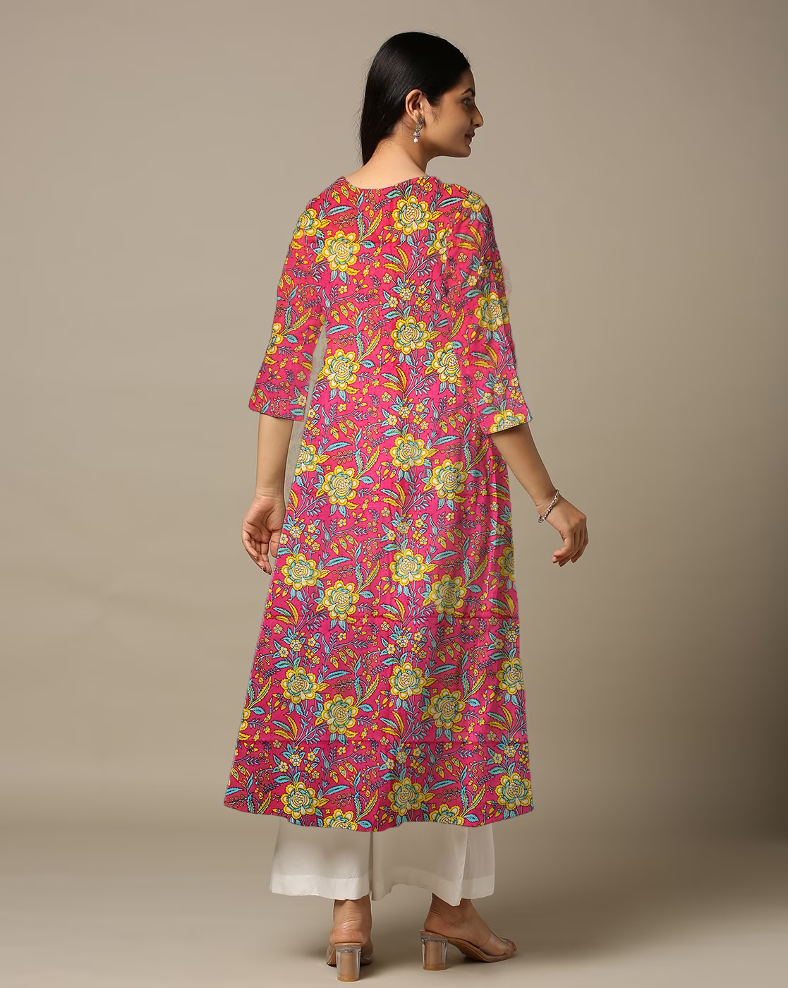 Be the first to review “Sun Flower Print Pink Cotton Anarkali Kurti For Womens”