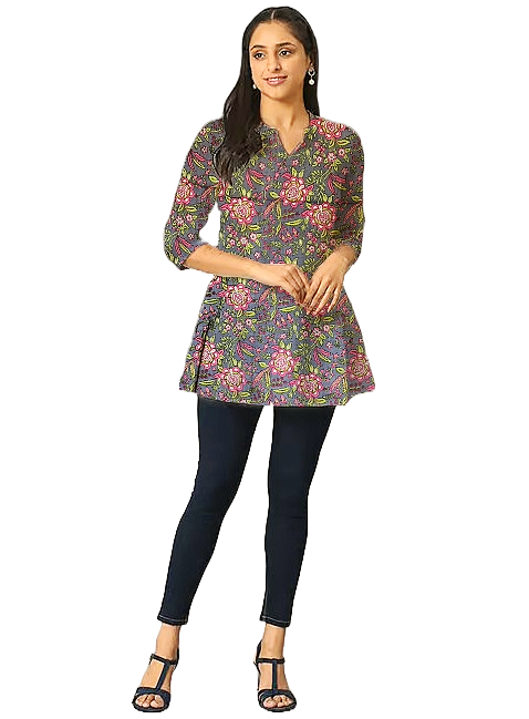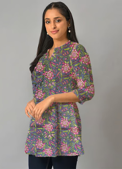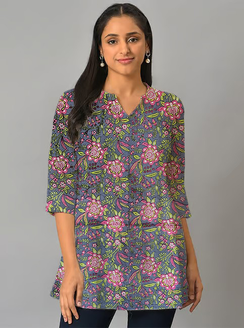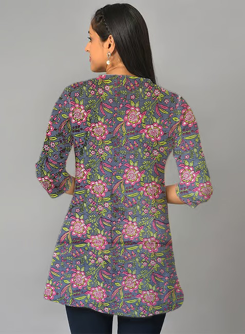 This Short Kurti look will catch your fancy at a single glance. This Printed Short Kurti features 3/4th sleeves that adds to its classy look. Besides, the use of Suitable quality Cotton fabric in its making further ensures that you stay comfortable all day long. Pair it with Jeans Pant or Leggis for a cohesive look that exudes confidence.