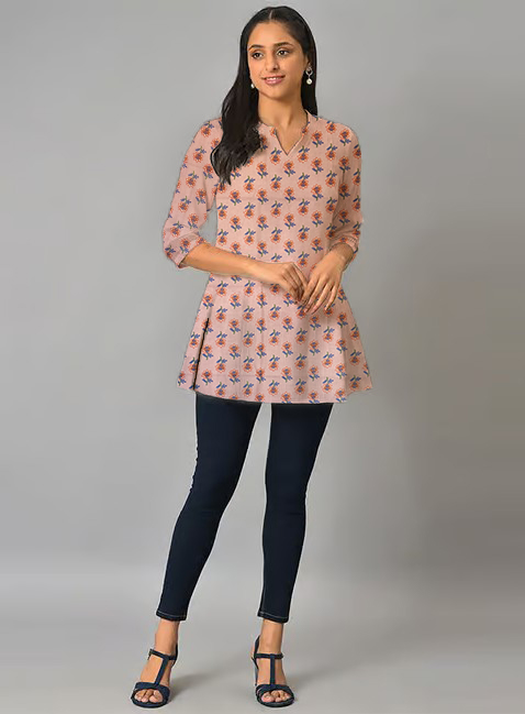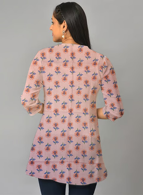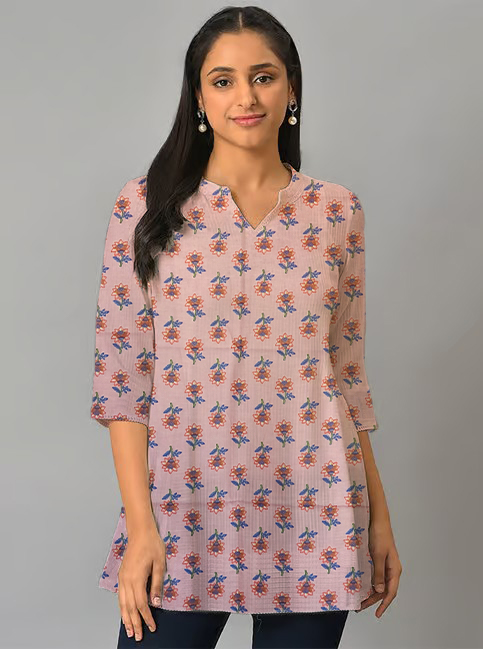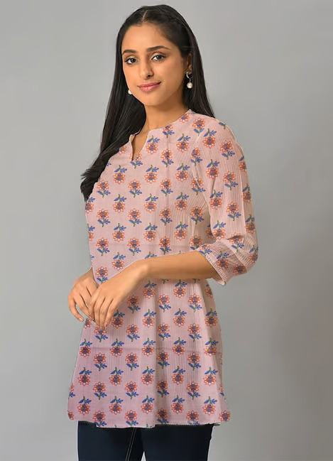 Be the first to review “Tiny Floral Print Pink Cotton Short Kurti For Womens”