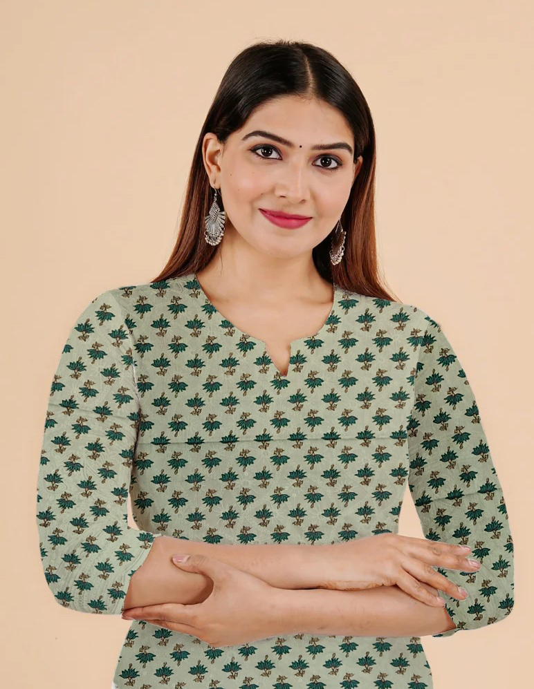 Be the first to review “Tiny Floral Printed Green Cotton Kurti For Womens”