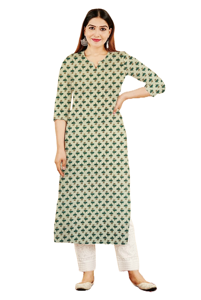 Tiny Floral Printed Green Cotton Kurti For Womens