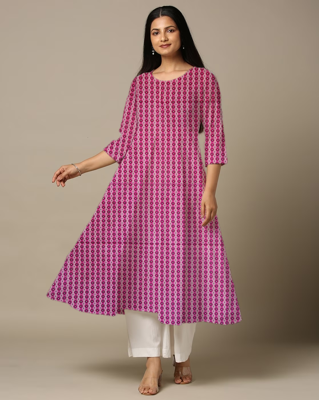 Be the first to review “Vertical Geometric Print Purple Cotton Anarkali Kurti For Womens”